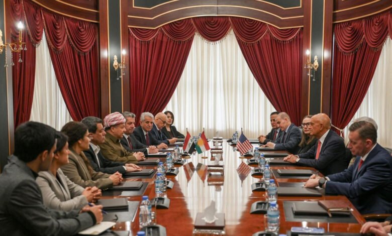 وشهدت أربيل وصول المبعوث الأميركي الخاص لشؤون سوريا، توم باراك، في زيارة ركزت على متابعة التطورات الميدانية والسياسية، ولا سيما ما يتعلق بالشمال السوري وملف “قـــسد”، ضمن مساعٍ أميركية لاحتواء التصعيد ومنع انزلاق الأوضاع نحو مزيد من التعقيد.. وبحسب معطيات سياسية.. جاءت لقاءات اليوم مكملة لاجتماعات سابقة، مؤكدة أن أربيل باتت عنواناً رئيسيا للتواصل الدولي، بشأن أزمات المنطقة مستفيدة من قدرتها على جمع أطراف متعددة، ضمن إطارٍ حواري هادئ، في مرحلة تشهد إعادة ترتيب للأولويات السياسية والأمنية