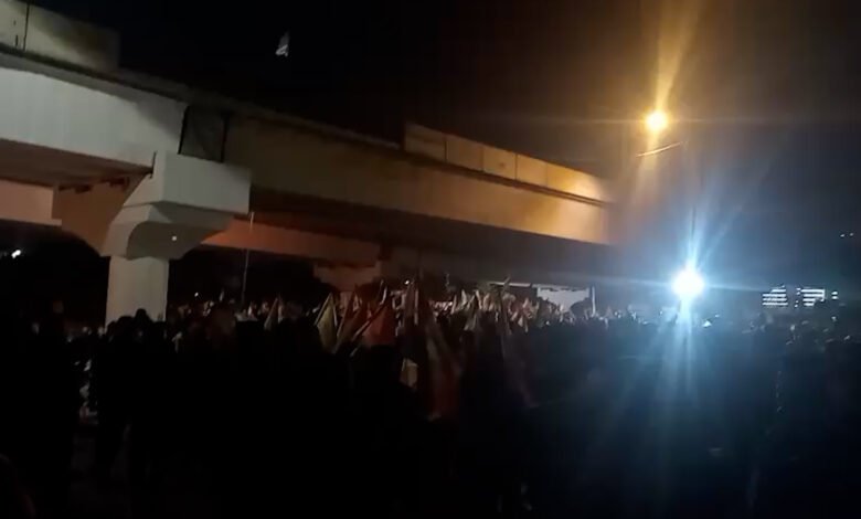 أعلن الإعلام الأمني تعرض عدد من منتسبي القوات الأمنية لإطلاق نار وحرق كرفانات وإحدى العجلات على الجسر المعلق من قبل بعض المتظاهرين.