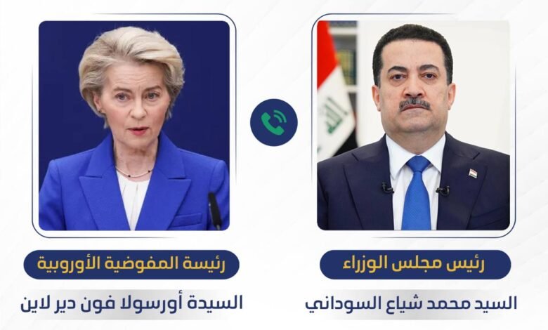 السوداني يبحث مع رئيسة المفوضية الأوروبية جهود العراق لوقف الحرب وحماية الدبلوماسيين