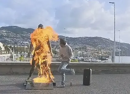 تلاحق الشرطة البرتغالية مخرباً أشعل النار في تمثال كريستيانو رونالدو بجزيرة ماديرا مسقط رأس قائد النصر السعودي، بعدما نشر لقطات لتصرفاته الغريبة على الإنترنت.